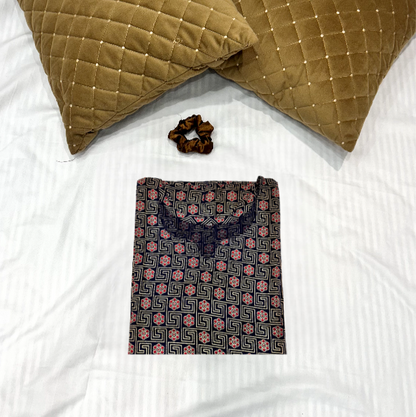 Meher means kindness, and Chakra reflects the symmetry. The print gives a modern yet traditional block vibe. Meher Chakra means the wheel of kindness. The kurti features intricate floral mandalas that blend strength with softness. It’s for those who lead with compassion and carry tradition with a bold, contemporary spirit.