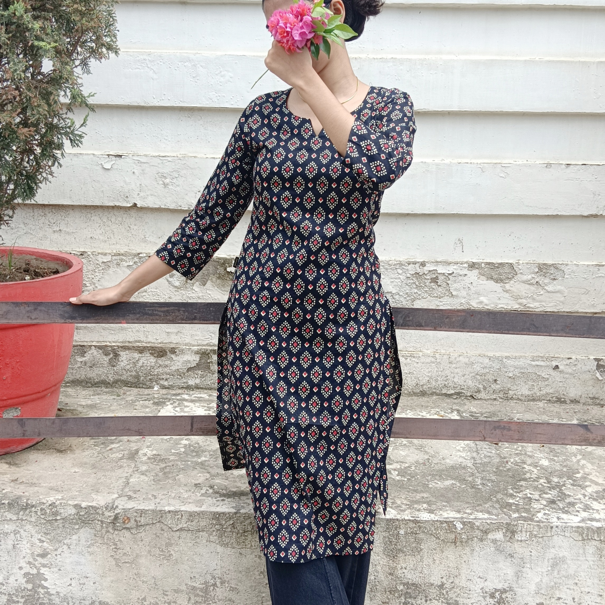 Step into effortless elegance with our beautifully tailored kurti, designed to flatter every body type while offering unmatched all-day comfort. Crafted from breathable, skin-friendly fabric, it feels soft like a second skin and flows gracefully with every move. Whether you're headed to work, brunch, or a family gathering, this kurti blends tradition with modern design to fit seamlessly into every part of your day. Proudly made in India, it reflects the spirit of confident, contemporary Indian women who value both style and ease. Simple to care for and timeless in appeal — this is comfort, made chic.